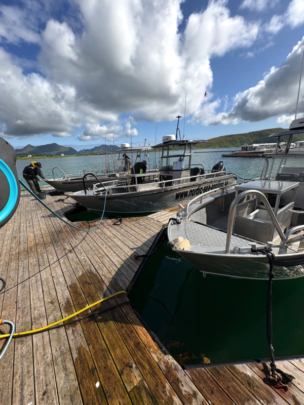 We staan redelijk op tijd op om te ontbijten want rond 9 uur willen we op de steiger zijn om te luisteren wat de plannen van de visgidsen zijn voor vandaag. Niet dat we moeten volgen daarin want ondanks dat het een festival is ben je vrij om je eigen plannen te maken. Aangezien de visgidsen weten hoe het daar is zeker interessant om te kijken wat hun plannen zijn. Alexander spreekt ons nog even aan op de steiger om te vragen of we zin hebben hem te volgen voor een poging om vandaag op de heilbot te gaan. Dit is iets waar we allemaal wel zin in hebben en varen dan ook achter hem aan naar zijn begin stek voor vandaag. We vangen voordat we naar buiten gaan nog even de nodige aasvissen voor onze doodaas montage.