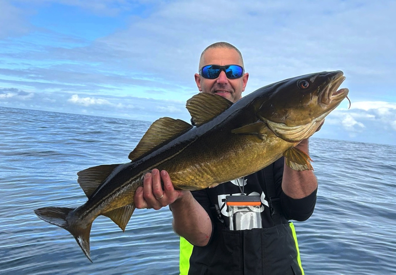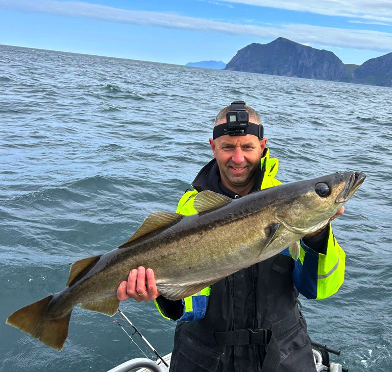 De zon schijnt en de zee is heel anders dan gisteren en zo goed als vlak wat natuurlijk heel lekker is na gisteren. Wat een verschil kan dat zijn binnen een paar uur in Noorwegen. Het varen naar de stek is zoveel makkelijker dan gisteren. Eenmaal daar aangekomen zoeken we in onze ogen een mooie plek op en zetten we de montages overboord en is het wachten op die felbegeerde aanbeet. Dat laat op zich wachten maar dat geeft dan wel die gezonde spanning. Aangezien het een lekker rustige zee is worden ook de hengels voorzien van lichte shads gepakt en wordt er geprobeerd om ook op die manier vis te vangen. Uiteraard hopen we op heilbot maar ook vandaag geven ze helaas niet thuis. Gelukkig voor ons is er genoeg andere vis te vangen dus we vervelen ons niet.