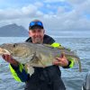 Ook nu vangen we snel wat aasvissen op de hoek en gaan we door naar open zee. Het is eigenlijk hetzelfde verhaal als vanmorgen met beleid en geduld komen we aan op de stekken. Hier weten we toch de vis weer te vinden en komen er regelmatig toch mooie maatse vissen in de boot waaronder nog een dikke koolvis van 85 cm. We hebben wel een beetje pech tijdens het vissen want er verdwijnt een lijn in de motor deze weten we snel uit te zetten maar er zit alsnog de nodige lijn in. Voorzichtig halen we zoveel mogelijk lijn er uit maar kunnen niet voorkomen dat er lijn in achterblijft en zullen het morgen melden bij de visgidsen zodat die de rest kunnen verwijderen.