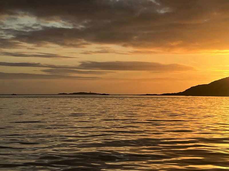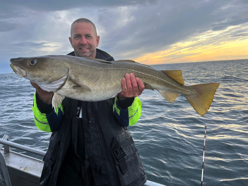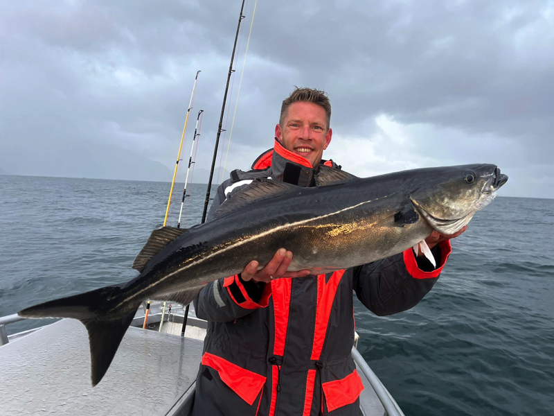 Sander weet op zijn snoekhengel met kleine shad ook nog de nodige koolvissen te vangen wat echte vechters zijn wat op zo’n hengel wel echt een sport is. Wel weten we nog een grote kabeljauw en koolvis van beide ongeveer een meter te pakken dus we klagen niet. Door het super goede weer en een bijna gladde zee met ondergaande zon is het geen straf om de dag zo af te sluiten. Je komt hier voor het vissen uiteraard maar je mag ook zeker de omgeving niet vergeten! Na de nodige mooie foto’s te hebben gemaakt zijn we zeer tevreden weer richting het huisje gegaan.