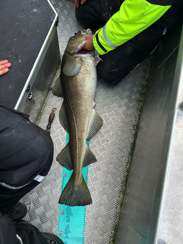 Menno weet tussen alle vis nog een mooie kabeljauw te vangen van 117 cm echt wat een ding. Vooral groot en zwaar om die boven te krijgen maar dat levert wel een mooie foto op. Van dit formaat hebben we ze nog niet eerder gezien en in ieder geval kan deze vis meedoen voor de prijzen die deze week beschikbaar zijn zoals bij ieder festival. Daar vis je niet voor maar is natuurlijk altijd wel leuk en mooi meegenomen als je prijs hebt. Dat weten we pas aan het einde van deze visweek aangezien het goed geheim gehouden wordt hoe het met de vangsten gaat en dat is ook wel zo leuk.
