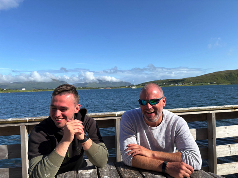 Net voor vertrek nog heel even kort met Raffie gesproken die vraagt wat we van plan waren. Het plan was toch nog één keertje op een andere plek dicht bij het huisje te gaan proberen op heilbot. Toch wel een vis die we allemaal graag zouden willen vangen en dat betekent dat je er ook veel tijd in moet stoppen.