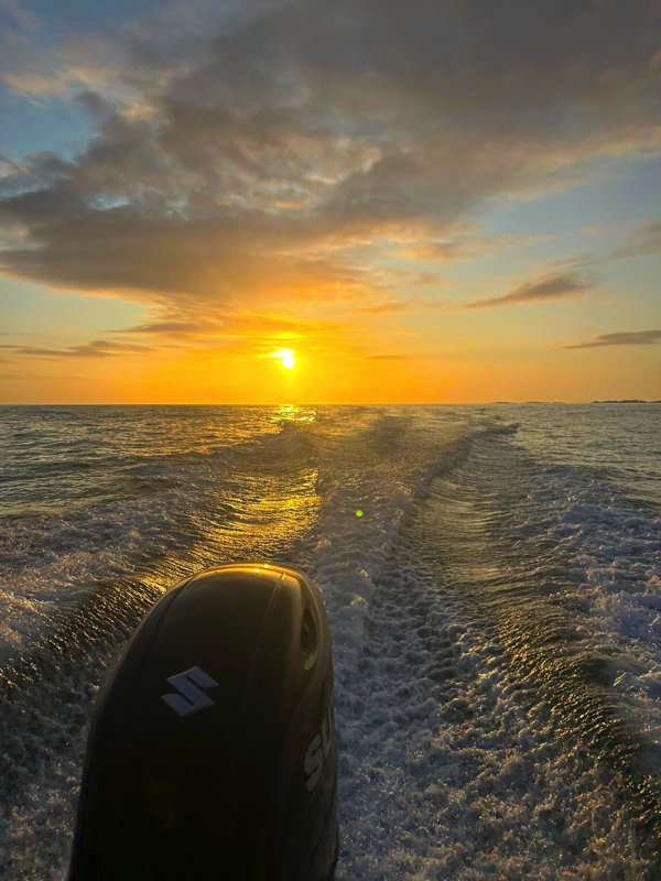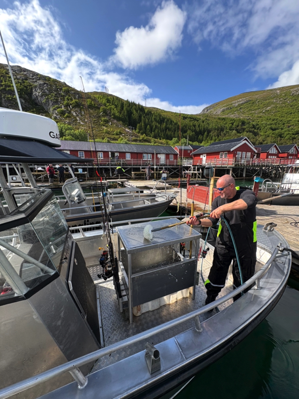 Eerst even ontbijten en een bakje koffie om goed te kunnen opstarten en bespreken we de planning voor de dag. Na het ontbijt gaan we richting de boot om daar al onze materialen vanaf te halen zodat we de boot helemaal schoon kunnen maken. En als ik zeg schoon bedoel ik ook echt schoon. De controlerende visgids is streng en niet snel tevreden  maar daardoor zien de boten er nog steeds super goed uit. Ook kijkt hij na melding gelijk even achter de schroef om te zien hoe het zit met de achtergebleven lijn. Hier zit nog best een aardig plukje in en zonder melden had dat voor grote problemen kunnen zorgen en nu is het eigenlijk zo opgelost.