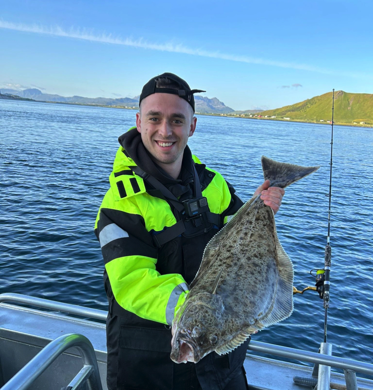 Een manier die minder intensief is als met shads zodat onze armspieren even wat rust krijgen gezien de dag en nog 5 dagen voor de boeg hebben. We hebben al snel de benodigde aasvissen te pakken en kiezen een heilbot stek uit. We leggen met 4 hengels de montages uit en nu begint de spanning of het zou lukken. Op de dieptemeter zien we na een tijdje dat er iets omhoog komt naar onze aasvissen en nu neemt de spanning nog meer toe zou het dan toch gebeuren. Sander ziet en voelt iets voorzichtig aan zijn aas rommelen en na wat voorzichtig gerommel bijt de vis door en heeft Sander hem te pakken. Aangezien de vis op ondiep water wordt gevangen en niet al te groot is zien we de heilbot al snel boven. Een mooie start van de week met veel vis en een heilbot van 75 cm. Daarmee sluiten wij de dag af en keren tevreden terug naar het huisje.