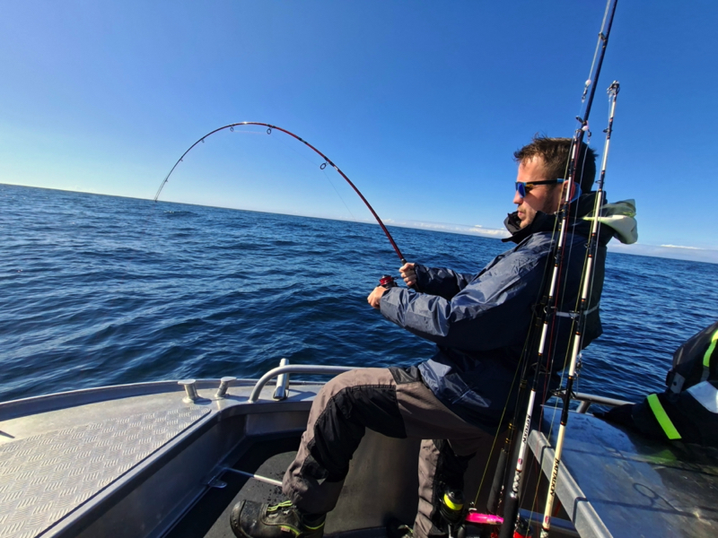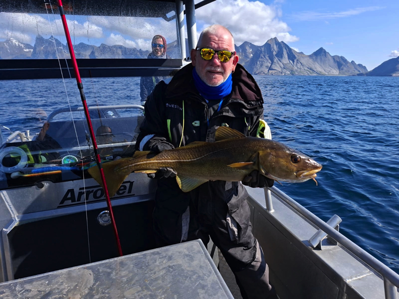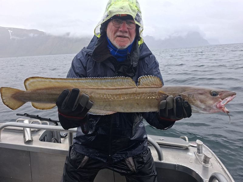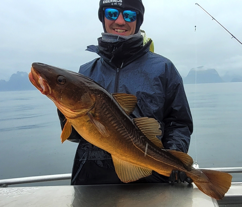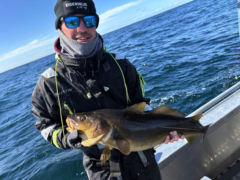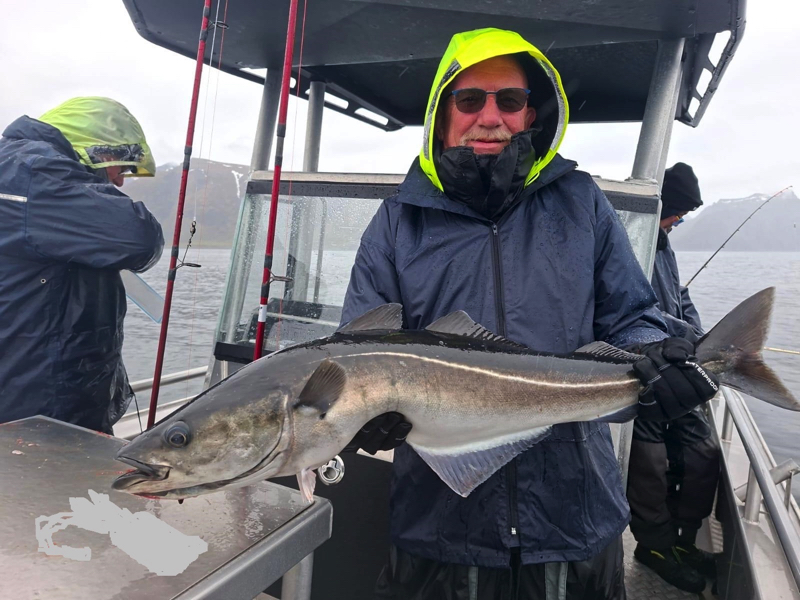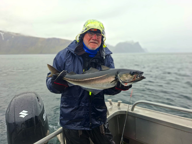 De komende dagen stond in het teken van volop vissen op kabeljauw, koolvis, en onze hoop op een heilbot. Het weer was de hele week zeer wisselvallig: de ene dag scheen de zon, terwijl we de volgende dag te maken kregen met windkracht 7 en regen die de hele dag bleef aanhouden. Ondanks de onvoorspelbare weersomstandigheden vingen we indrukwekkende kabeljauwen en enorme koolvissen, wat voor ons als groep een geweldige ervaring was. Onze hengels stonden constant krom door de grote vangsten.