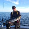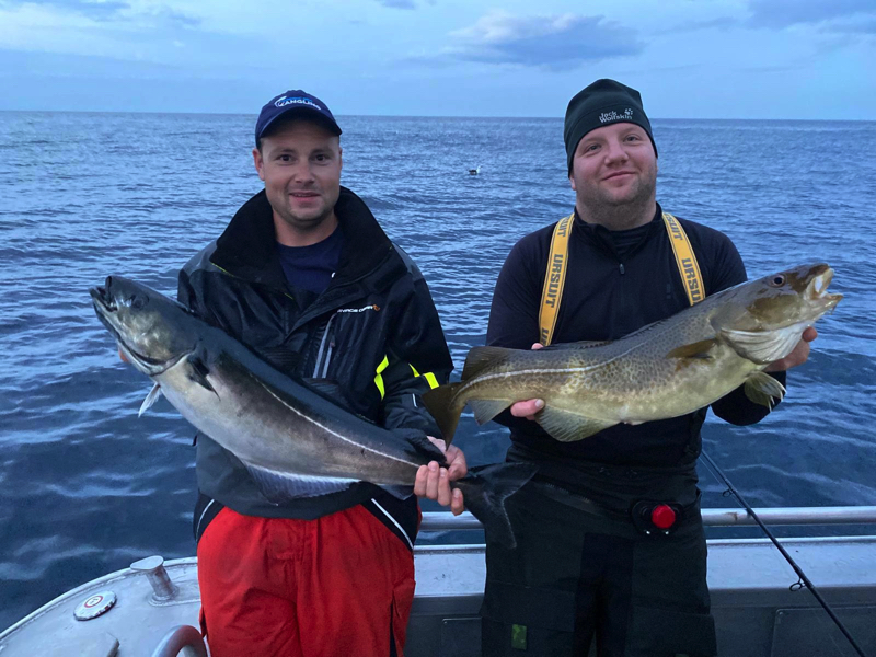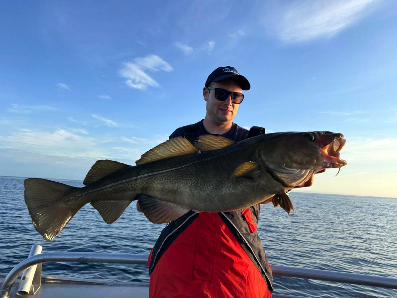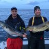 Met gids Gustav naar een verre stek, ondanks het slechte weer met veel wind. Er werd goed gevangen: veel kabeljauw voor in de koelbox. Later op de dag nog een poging op heilbot, zonder succes. ‘s Avonds nog kort uitgevaren voor pollak en schol. Twee mooie pollakken en diverse fraaie schollen gevangen.