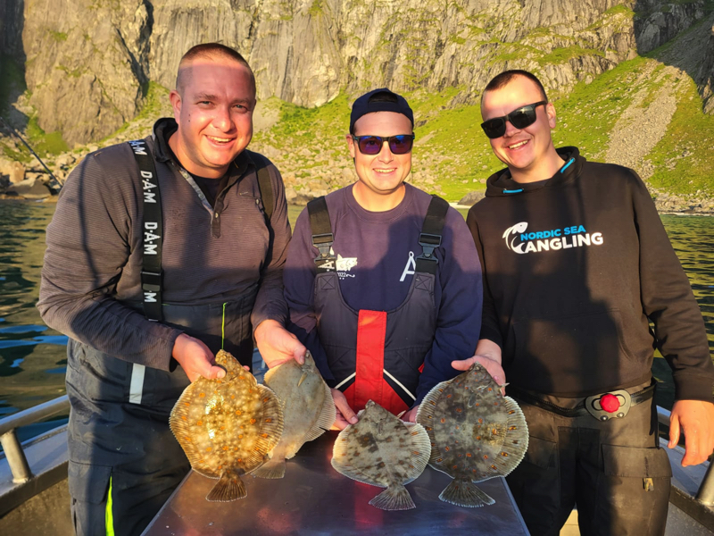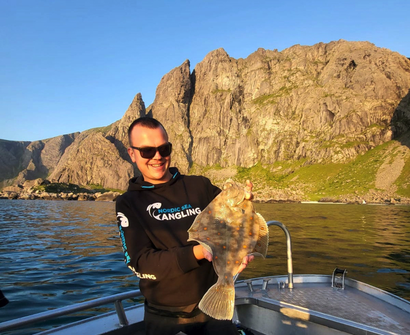 Vandaag gericht op heilbot gevist onder begeleiding van gids Marcus. Ondanks het prachtige, bijna windstille weer, bleef de heilbot uit. Maar de avond bracht weer actie: op zoek naar schollen en met succes – veel kleine schollen gevangen, grootste was 49 cm.