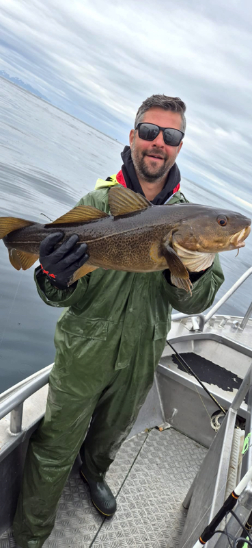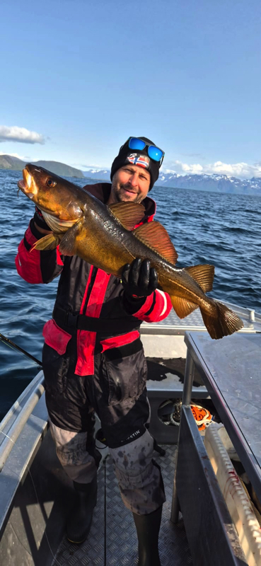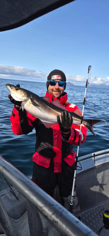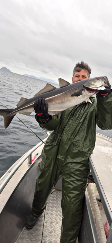 De laatste dag was er weer 1 om in te lijsten…soort walvissen gezien om ons heen, daar de haring was gearriveerd, mega veel koolvis tot 1 mtr en ruim voldoende kabeljauw gevangen tot 2 uur, rustig genietend van het weer. Daarna naar het kamp gevaren om zo zoals elke avond de boot te reinigen met de hoge druk en afgetankt de boot weer netjes ingeleverd, wij hebben geluk dat die niet zo vies is daar we op paar x vis eten na, alles weer laten zwemmen.