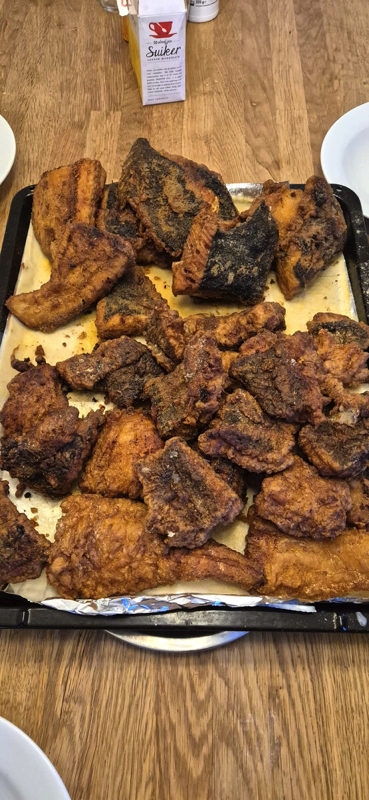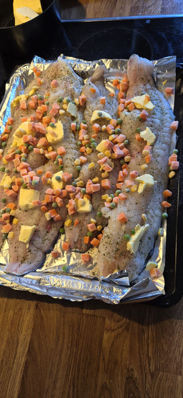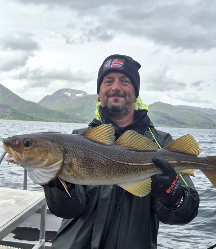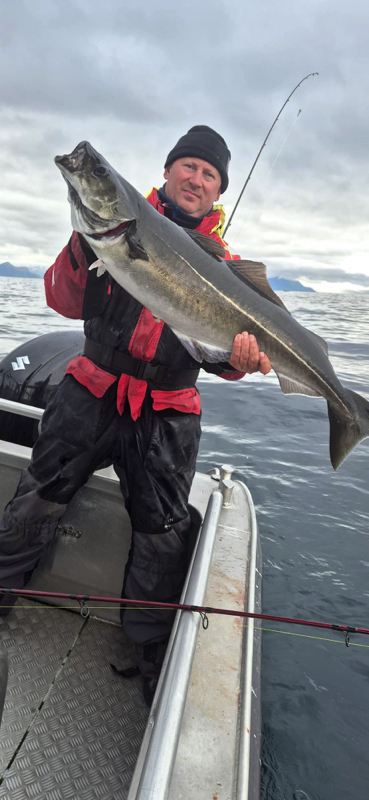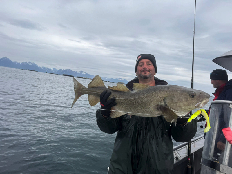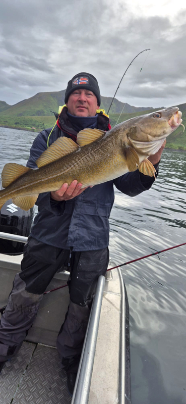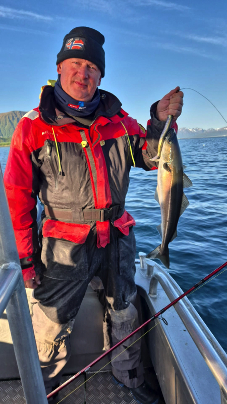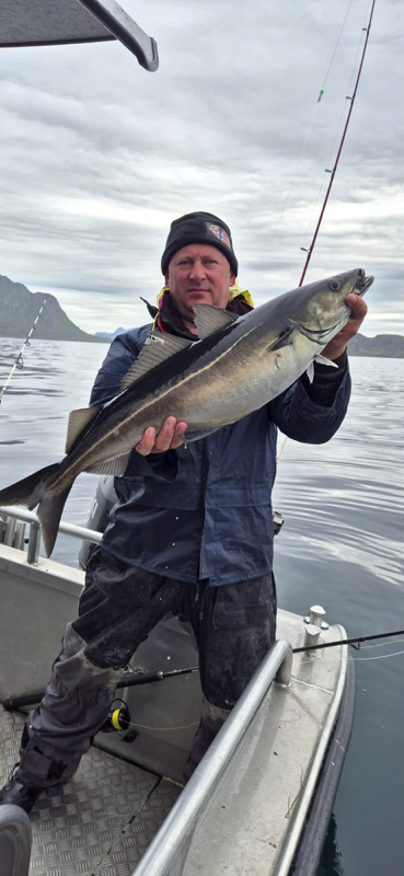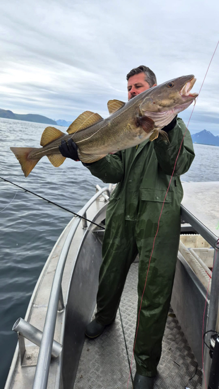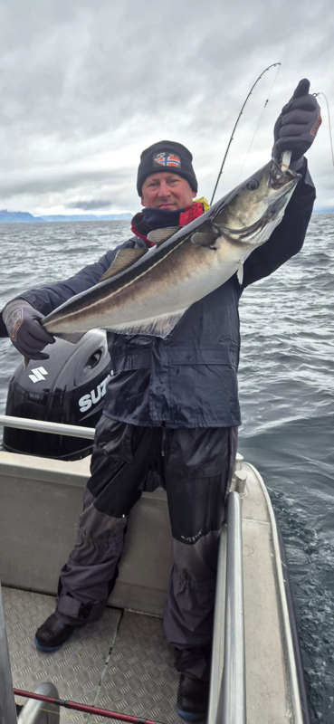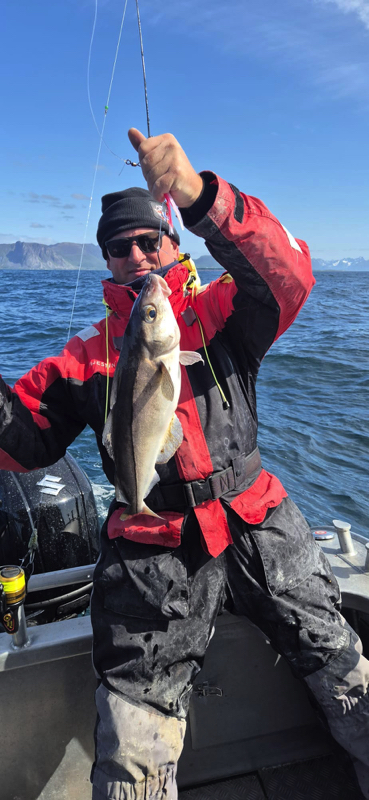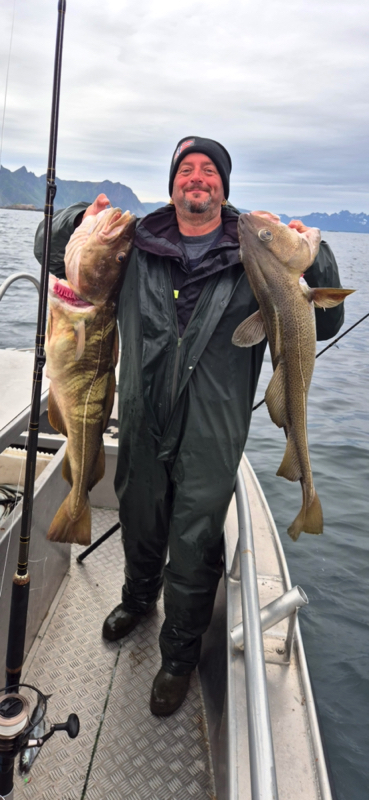 Zondag door de windrichting richting Sortland geweest, begonnen bij het vliegveld op heilbot en langzaamaan driftende noord oost op richting Sortland, later die dag over geschakeld naar de kabeljauw en wat er verder honger had. Resultaat was best leuk, wel weer kleiner tot een 70cm, maar de aantallen waren waren best veel. Elke worp wel raak op de juiste berg. Ook wat prachtige schelvissen erbij gevangen waar onze Lemster medevisser een geweldige maaltijd van gemaakt heeft uit de oven met een soort paella erbij.