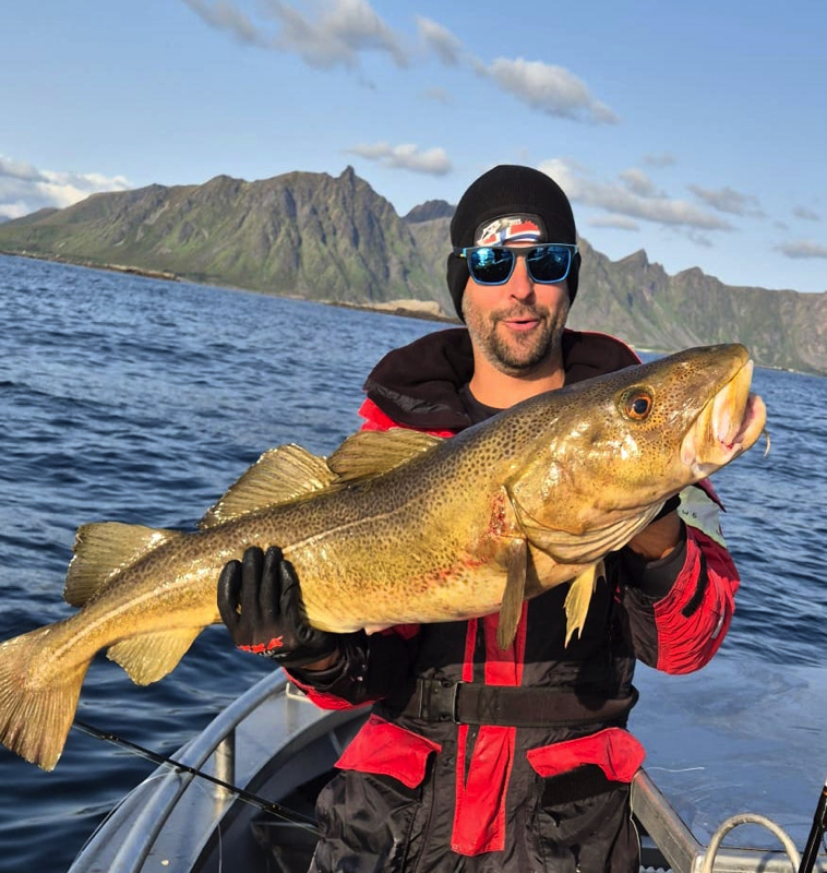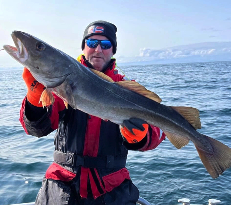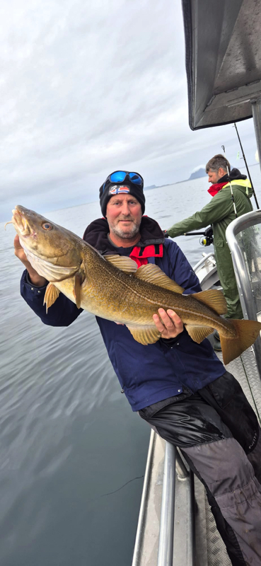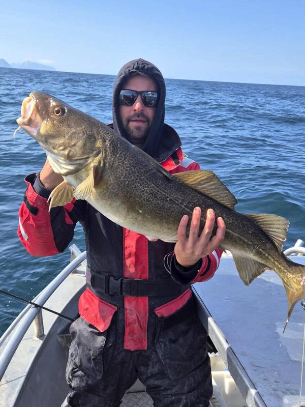 In de nacht dacht ik wie klopt er aan de deur,maar dat was een meeuw die met zijn snavel op het raam tikte voor eten 😅, dus de dag erop iets later dan gepland het water op, met de hengels die uiteraard er nu wel waren. Schitterend weertje op naar stek 13, 14, 15 en 4 als ik het goed. ‘s morgens was de visserij gewoon helemaal niets tot aan uur of 2 langzaamaan vissend van berg naar berg weer terug en ineens ontdekken we de kabeljauw op een 35 mtr. Kort maar krachtig tot uur of 8 in de avond gevist met mooi resultaat kwa afmetingen en aantallen 104cm de grootste kabeljauw.