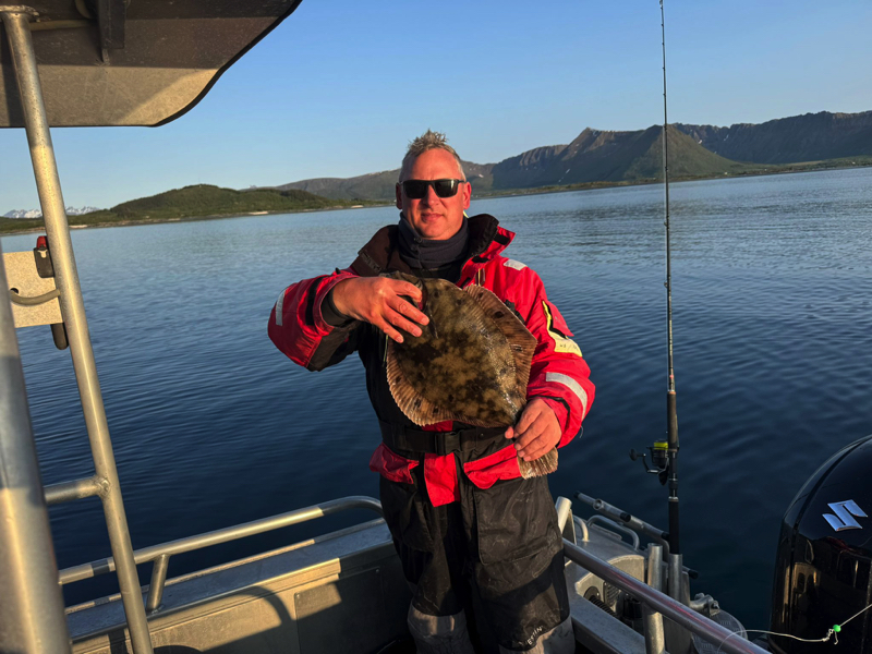 Zaterdag en zondag gaf hij enigszins kwa weer/wind, om plezierig te vissen, niet veel af, dus richting open zee. Vesteralen een top kamp, draait men de andere kant op onder de brug door en men kan weer voluit vissen dus wederom eerst op kabeljauw enz geprobeerd. Voor ons was Vesteralen een compleet nieuw visgebied, na aantal keer in Nappstraumen, dus werd even zoeken. Kleiner spul, maar wel leuk vissen, vang je tot een 70cm, in de middag wederom op de heilbot maar dat mocht dus weer niet lukken.