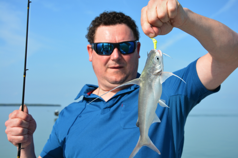 3° dag: Stond er een backcountry/ haai trip op de agenda. Het weer was terug prachtig (28 graden en geen wind). We ontmoetten onze schipper Kiwi, en direct was er vertrouwen in onze kapitein, hij begreep wat we wilden, namelijk diverse soorten wat we nog nooit vingen in het verleden. Het was een topdag met blacktip haai, scalloped hamerhaai, mangrove snapper, ladyfish,sailors grunt, zeemeerval, redfish, jack crevalle enz… We bevisten de flamingos, dit is een gebied die hier zo heet, en bekend staat voor de diversiteit. Topvis was die blacktip, die een 2 meter plus was en naar schatting 150 pond. Na een behouden terugvaart doken we de pub in aan de postcard inn. Het was er druk en gezellig, het was ook hier spring break, wat zowat neerkomt op onze paasvakantie. Na een lekkere douche zijn we naar de mm88 gaan eten, en dat was top. Hun filet mignon was van de allerzachtste en smaakvolste die ik ooit at. We zijn ook allen een beetje verlekkerd op een goed wijntje, en ook daar vonden we onze leus. Na enkele flesjes, en een beetje beneveld keerden we terug naar Ocean point.