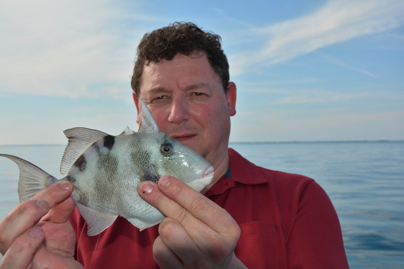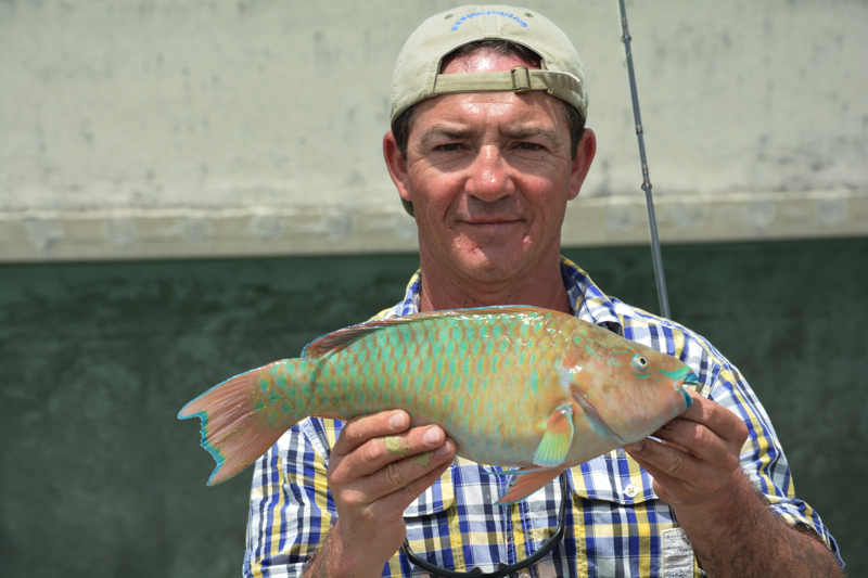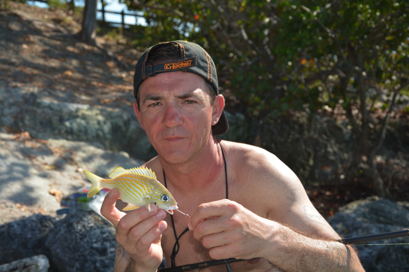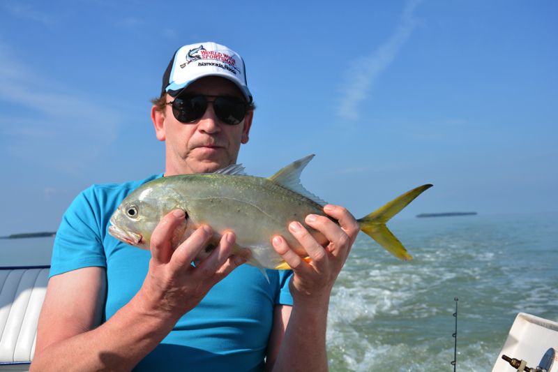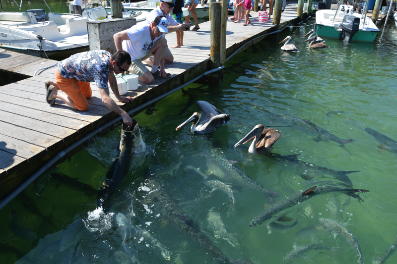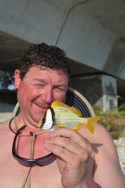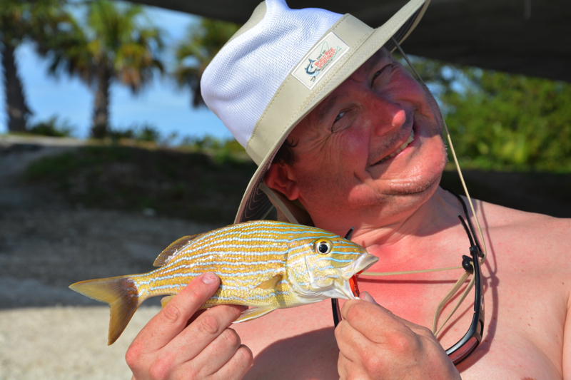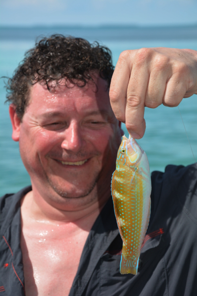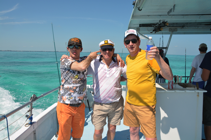2° dag: We hadden afspraak met Jerremy aan de receptie van de lodge rond 9 uur, maar door de reis en jet lag waren we al enkele uren op voorhand wakker. We besteden die tijd om alles ter plaatse te verkennen en wat foto’s te nemen van de omgeving. Eenmaal onze Belgische topper ter plaatse was, zijn we uitgebreid de omgeving gaan verkennen. Wat we zeker unaniem mee eens waren, was dat hij een toffe peer is (wat had je gedacht hij is belg), en het helpt u enorm als je alles op voorhand weet te vinden. Je bent er enkele gezelligge uren mee op stap, maar met al die kennis verloopt uw week veel leuker en zorgelozer. na enkele stops aan de meest populairste bars en lekkerste restaurants stopten we bij de hengelsportzaak, en daar moesten we nog een en ander kopen. Alle modellen van Costa zonnebrillen hebben ze er op stock, en aan betere prijzen dan bij ons, wat we dan ook met volle overtuiging deden. We bereikten dan Robby’s, waar onze 1° vistrip vertrok op de party boat. Maar eerst nog de tarpons voederen (wat echt iets bijzonder is), en dan waar we voor kwamen: namelijk vissen. We hadden stern plaatsen (op de achterkant van de boot) en na een half uurtje varen bereikten we de spot, chum overboord, en gaan met die banaan. Ikzelf paste een en ander aan op de huurhengels, als ook aan hun montage, en na enkele seconden kwamen de eerste vissen boven, en zo was het 3 uur op rij. Vis na vis, en de soorten waren enorm verschillend. Zo vingen we: white grunt, goggle eye, triggerfish, pilchard, haai, bleu runner, squirrel fish, yellow tail snapper, doctorfish…. En dan was het alweer veel te vlug tijd om terug te varen.