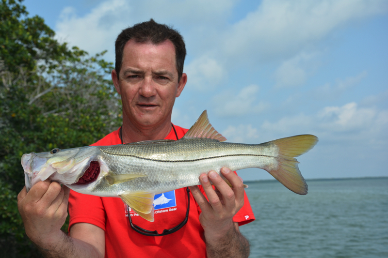 7° dag: Onze laatste geboekte visdag, en zoals gisteren splitsten de groepen zich terug op in 2 boten backcountry vissen. De groep met Steve wou terug de mangroves bezoeken, en wij zouden dat ook doen op zoek naar snook op de vlieg. En de vlieg wed al vlugger genomen dan het levend aas door snook, trout, snappers, grunts, ladyfish, meerval…de ganse dag vingen we ons te pletter. De groep met Steve ving 2 mooie haaien een lime en een blacktip maar minder andere soorten. Twee van ons besliste de dag af te sluiten al vissend onder de brug aan Robbys, en we vingen er een hoop vis op levende garnalen.