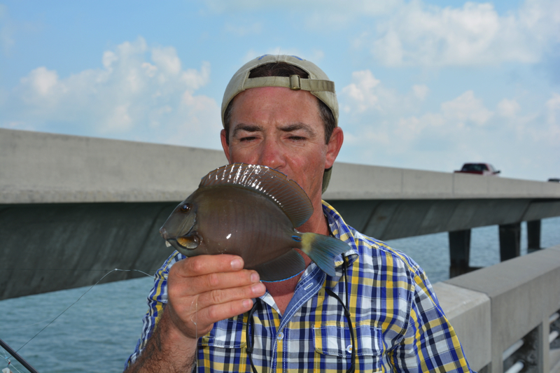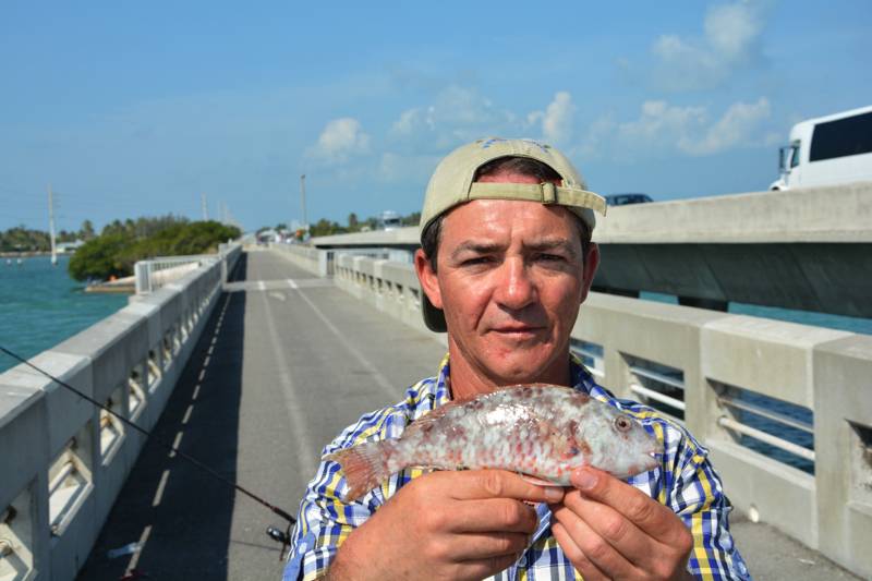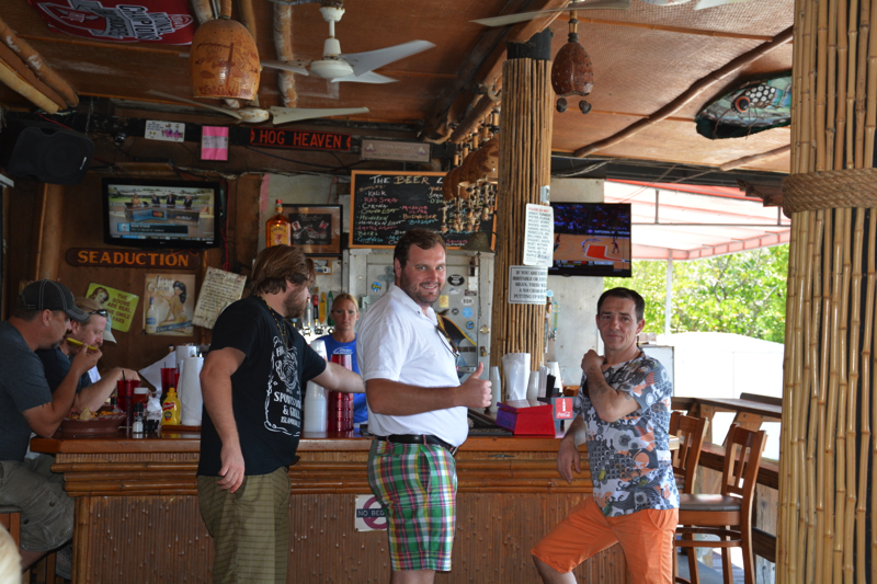8° dag : Onze laatste vrije dag vulde we in met te toeren richting Key west, fotos te nemen, een lekkere lunch aan het strand te nemen en wat te drinken. na de middag wezen vissen op de grote brug te marathon, en dat er daar veel vis zat was een feit. We kochten 200 garnalen, en een kilo octopus, en na dik 2 uur waren die tot het laatste velletje opgevist. We vingen vissen in alle kleuren van de regenboog waaronder verschillende soorten parrotfish, bermuda chub, pufferfish, grunts, snappers…. Na wat te zijn gaan zwemmen, een douche, het haar achteruit gekamd zijn we op stap geweest naar hoggs heaven alwaar we ons eens goed uitleefden (dat deed wel pijn aan de kop de dag erna).