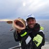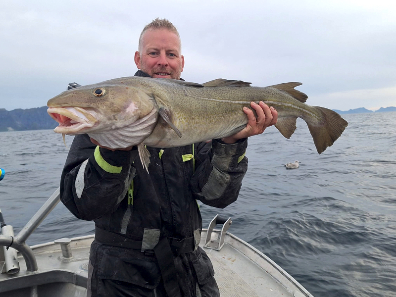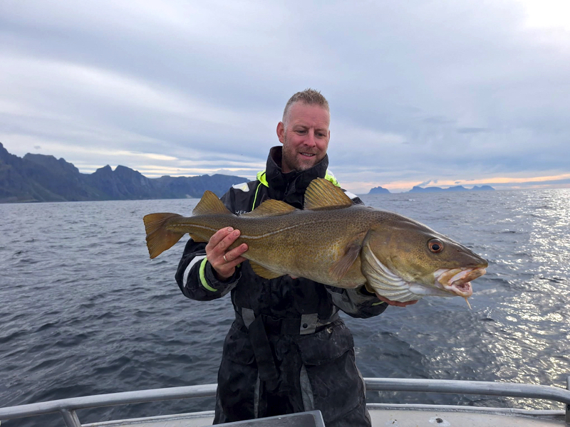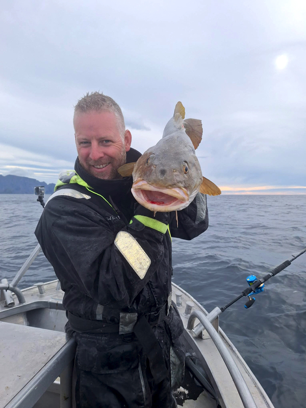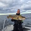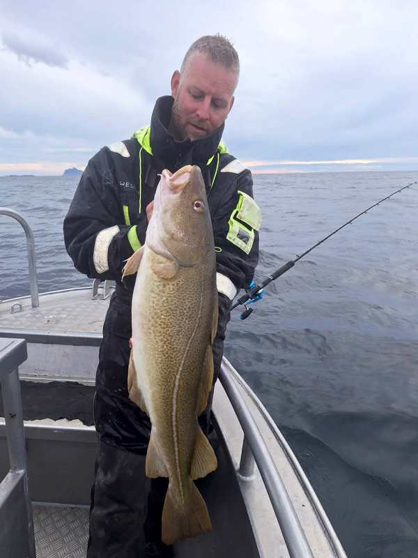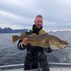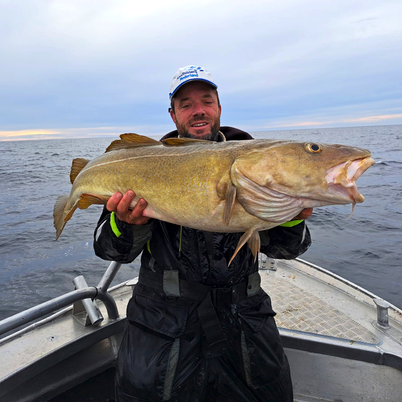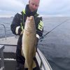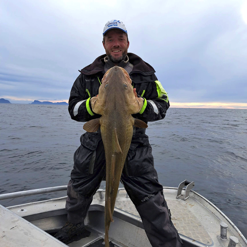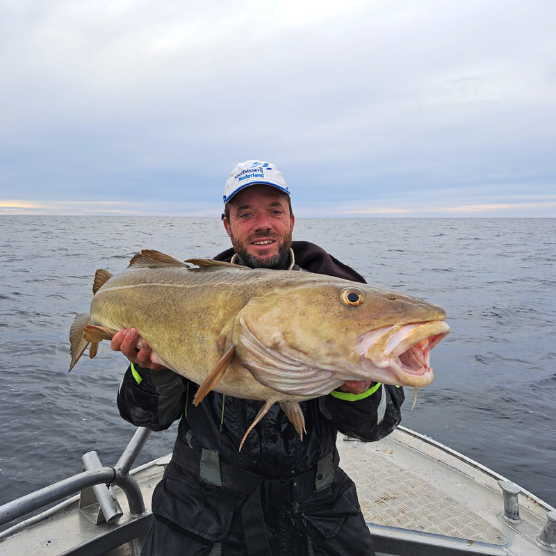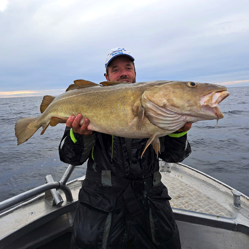 Het weer voor vandaag zou weer wat minder worden maar zoals als eerder gezegd, het is Noorwegen. Dit keer pakte het voor ons goed uit en werd het weer dus beter dan verwacht. Dat het weer hier zo snel kan veranderen kan dus ook zijn voordelen hebben. Vandaag ook weer gelijk naar de noordkant gegaan. Na wat spots te hebben gevonden en hele mooie dikke vissen hebben gevangen besluiten we het toch eens een stuk dieper op te zoeken en gaan dus verder naar buiten toe. Helemaal geen verkeerde keuze, we vangen mooi leng en voor Arlen een hele dikke Kabeljauw van 105cm 14kg. Voor deze vissen komen we naar Noorwegen, wat een beesten zeg. Het blijkt dus ook maar weer dat je veel moet variëren van spot en diepte. Dit jaar moeten we harder werken voor een paar vissen en blijven zoeken en proberen, maar wie zoekt die vindt.