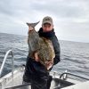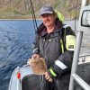 Vandaag besluiten we meer tijd te nemen voor de heilbotvisserij. Nou daar gaan we, aasvis vangen en hengels overboord. De spanning zit er altijd gelijk in zodra ik mijn lijn uit heb staan. Na een uurtje gaat er 1 hengel lopen. Yess dit is er weer 1, daar hoef je niet aan te twijfelen. Tijdens het opdraaien is hij zeker 5 keer terug de diepte in gegaan. Uiteindelijk komt er een hele mooie heilbot boven van 98 cm. Het blijven indrukwekkende vissen, hele mooie patronen op de huid en wat zijn ze sterk. We gaan eens kijken of we nog wat koolvissen kunnen verlijden.