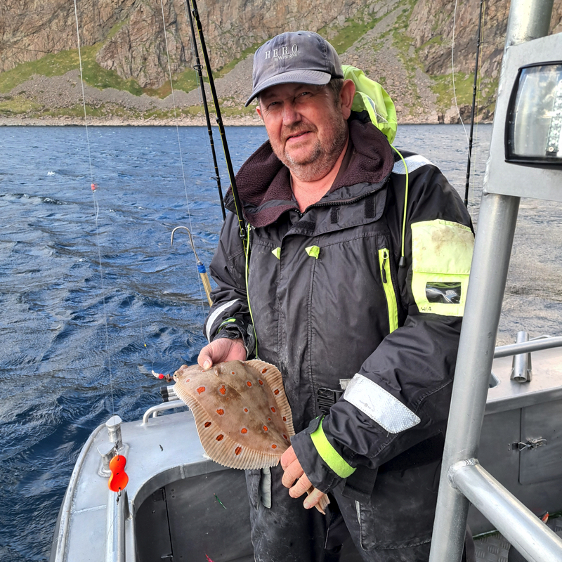 We vangen vandaag helaas geen heilbot. Tussen het heilbot vissen door probeert Arlen nog even een onderlijntje met gezouten pieren. Hier vangt hij uiteindelijk een mooie grauwe poon mee. Een bijzonder mooie vis om te zien. Het zit er helaas al weer op. Terug naar de haven en alles afronden, boot getankt en schoongemaakt. We hebben deze week iedere dag kunnen vissen, dit hadden we in het begin van de week dus niet verwacht. De vangsten waren iets minder dan de vorige keer in A maar we mogen zeker niet klagen, en dat doen we dus ook niet.