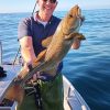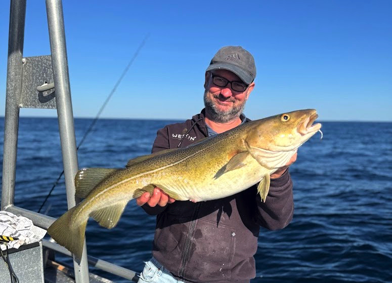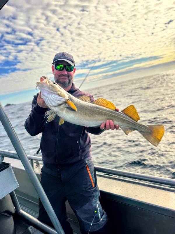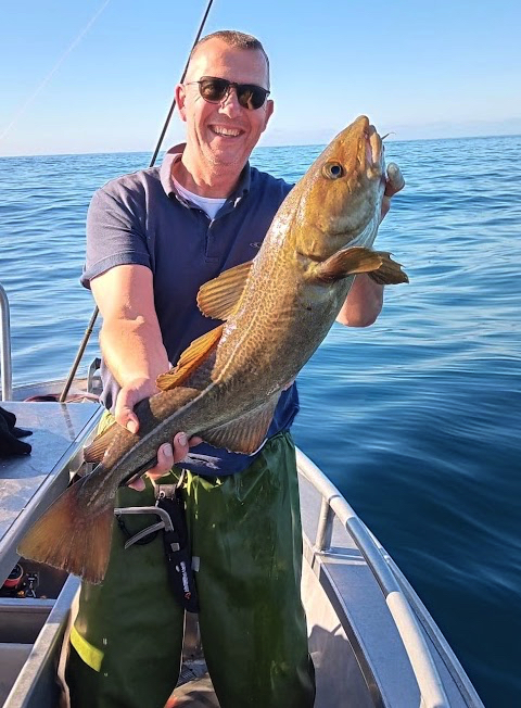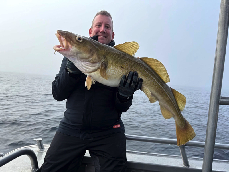 Ook bij ons op de boot was het volle bak, lengen van 1.19 tot 1.52 meter, grote kabeljauw (de grootste kabeljauw was 116.5 meter voor Alex), grote koolvissen waarvan de grootste 1.01 en 1.10 Ongelooflijk wat een mooie ervaring en wat een vis zit hier en wat een top dag was dit, een dag om nooit te vergeten !! Voldaan en wel van de dag arriveren wij rond 18.00 uur weer in de haven. Ik maak de boot schoon, Alex en Henk fileren de vis  en Vincent zorgt voor heerlijk verse kibbeling van onze zelf gevangen vis van die dag.