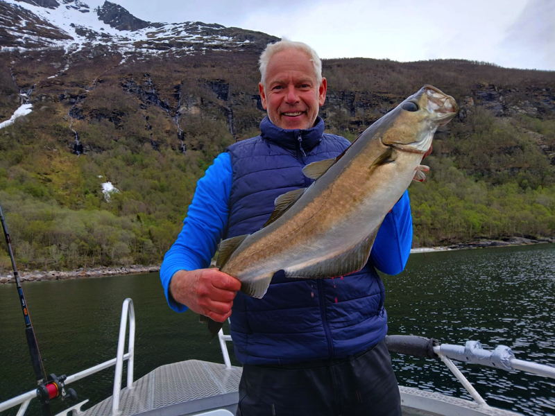 Weer was prima, weinig wind, flauw zonnetje en droog. Het water was echter nog erg koud. Het viel ons ook op dat er nog erg weinig aasvis, zoals kleine koolvis aanwezig was. Toch viel de eerste dag qua vissen nog helemaal niet tegen. Wel nog een probleempje met de boot, maar even de eigenaar gebeld, die direct de boot kwam omwisselen. Prima service dus. De dagen daarna gaf taaie visserij. Het was moeilijk om de vis te lokaliseren en deze waren ook niet al te groot van formaat. Dus wel regelmatig beet, maar vele zwemmen dan ook weer.